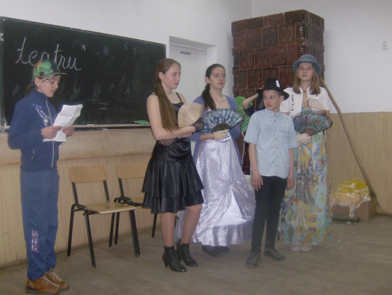 Concursul extrascolar "Clubul de teatru", realizat in cadrul saptamanii "Sa stii mai multe, sa fii mai bun", unde elevii claselor V-VIII au interpretat diverse roluri dezvoltandu-si astfel aptitudinile literar artistice